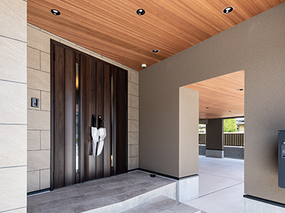 寄棟屋根の軒を深くした事で高級感を演出。