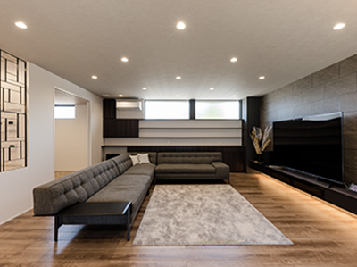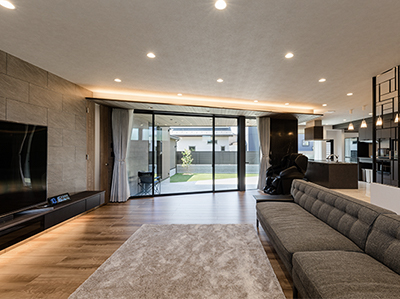 水平ラインを意識したリビング。