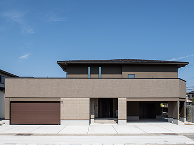 寄棟屋根の軒を深くした事で高級感を演出。